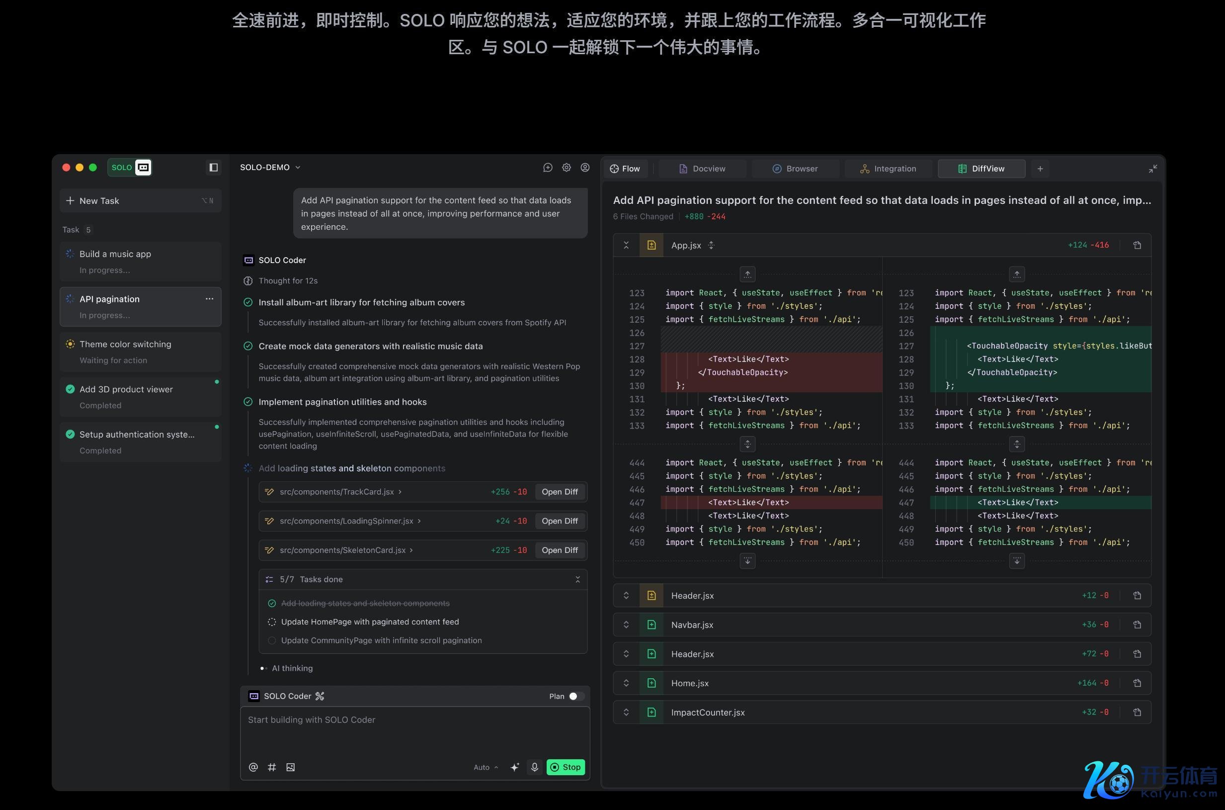这个词听着唬东说念主,但诠释起来却很直白:已往的AI是代码的赞助,只可相识你光标场所的那几行;而SOLO模式下的AI,是一个集裁剪器、终局、浏览器等多器用视图于一体,能自主实行拓荒任务的超等个体。