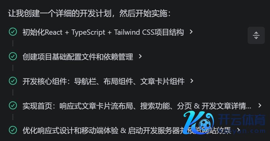 点击本旨后,屏幕中间的面板来源自动刷新,出现了“启动化神气”、“创建确立文献”、“拓荒中枢组件”、“终了首页功能”、“优化反馈联想等一系列我看不懂但嗅觉很横暴的任务进程。