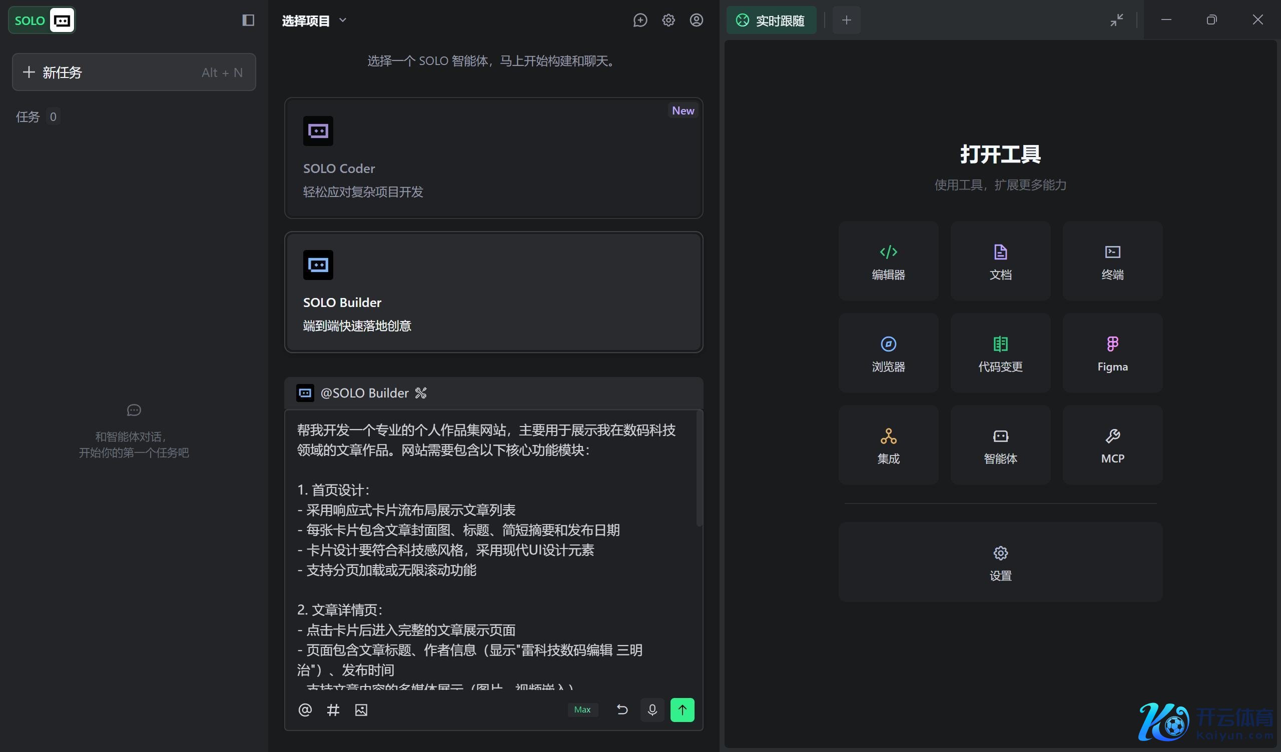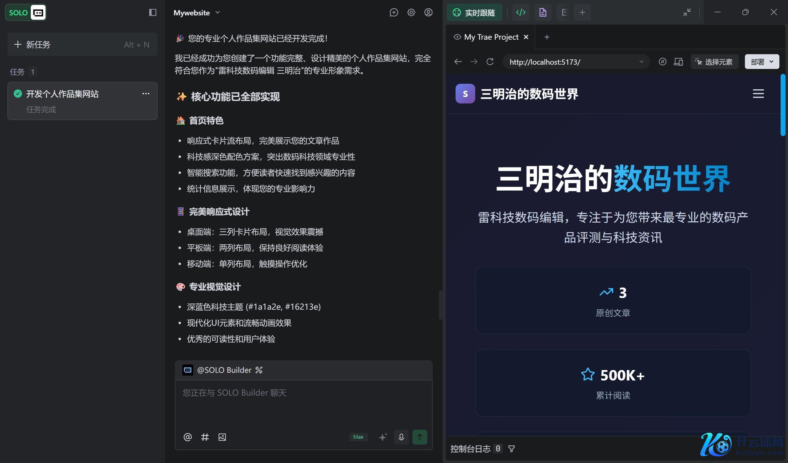 全新的三栏布局是SOLO模式的另一大亮点。你不错一边让AI拓荒中枢功能,一边另开一个对话窗口商议本领问题,以致同期鼓励前后端的不同模块,就像在延续一个真实的多东说念主团队,极地面擢升了拓荒成果。