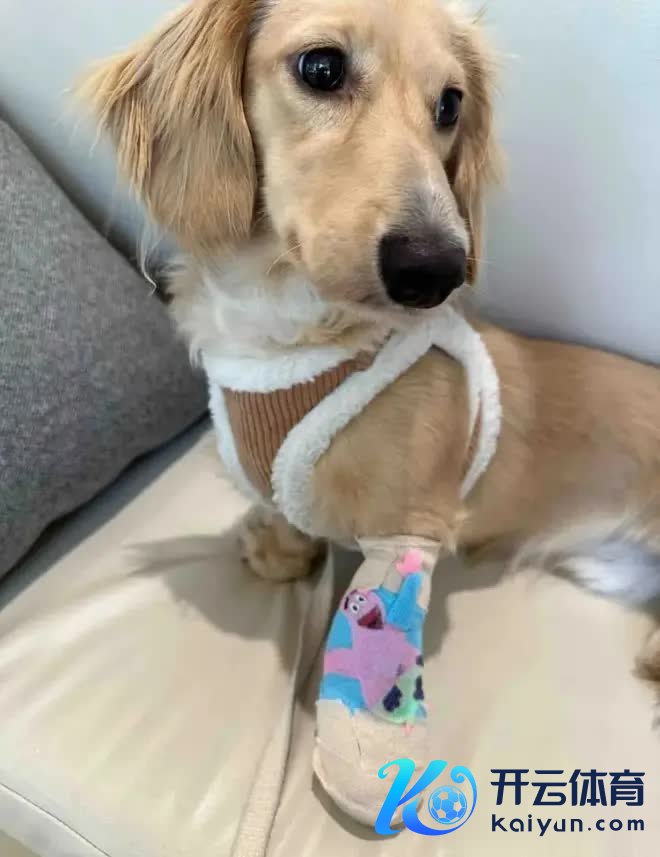 在这些相片中,有的小狗绷带上印着“派大星”图案,仿佛把动画片里的乐不雅精神也绑在了身上;