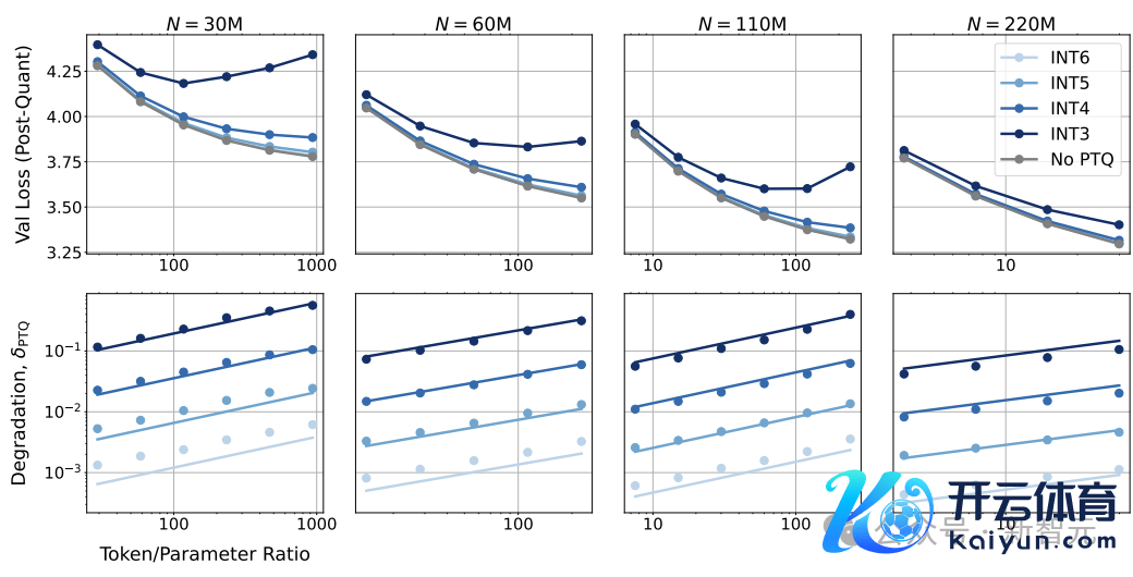 也就意味着,要是保执模子尺寸不变,只弯曲数据量和数值精度,那么不错根据数据量和智能体大小的比例来弯曲最优的数值精度,粗略更有用地讹诈有限的计较资源,通过减少数据量与有用参数数目的比例,使智能体的锤真金不怕火后果更接近假想的景象。