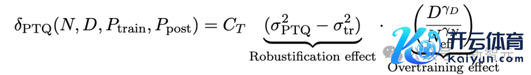 上述公式中,CT、γD、γN、γpost是正的拟合常数;当token与参数的比例D/N填塞大,或者量化后的精度Ppost填塞低时,模子在预锤真金不怕火时刻延伸后,量化带来的耗费可能会增多,