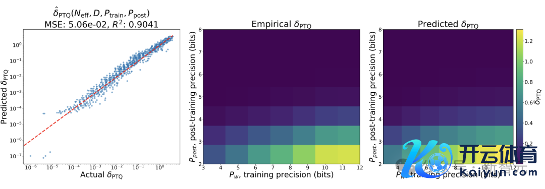 接头东说念主员发现,在瞻望δPTQ时有两种竞争效应,但总体而言,以较低精度锤真金不怕火的模子对锤真金不怕火后量化更为健壮,即遭遇的退化较小。