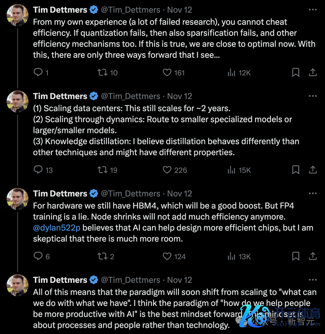 艾伦接头所科学家Tim Dettmers对此评价说念,这是很万古刻以来,最弥留的一篇论文。它以强有劲的凭据标明咱们正在接近「量化」的极限。