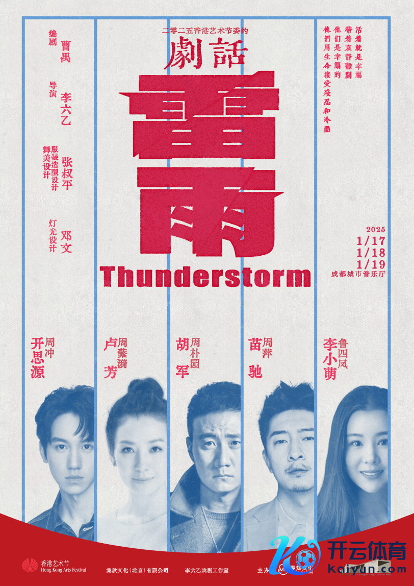 11月22日,由曹禺编剧,李六乙导演,张叔平担任舞好意思筹办、服装造型筹办,胡军、卢芳、苗驰、李小萌等主演的经典话剧《雷雨》成王人站上演晓喻定档,将于2025年1月17日-19日在成王人城市音乐厅上演。
