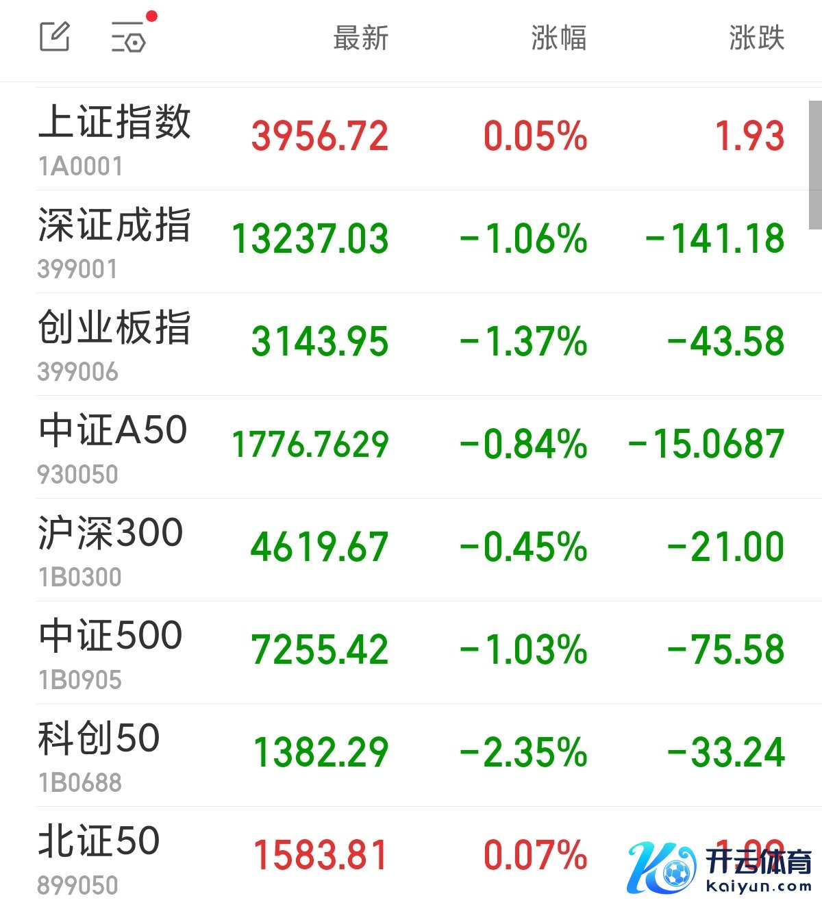 中新经纬11月3日电 周一早盘云开体育,A股三大指数低开后走势分化。收尾午间收盘,沪指涨0.05%,深成指跌1.06%,创业板指跌1.37%。