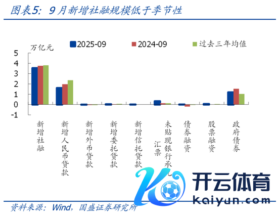 >结构看,9月社融口径东谈主民币贷款新增1.61万亿,同比少增3662亿,是社融的主要牵扯项。政府债券新增1.19万亿,同比少增3471亿,奉陪政府债券缓缓刊行扫尾,探求旧年基数偏高,后续政府债券对社融的牵扯将迟缓加大。企业债券融资新增105亿,同比多增2031亿,主要亦然与基数偏低相关。表外融资方面,表外三项增多3579亿,同比多增1869亿,表外单据多增是主要复旧,主要与单据冲量需求着逾期、表外单据贴现至表内边界着落相关,与企业单据少增相对应。
