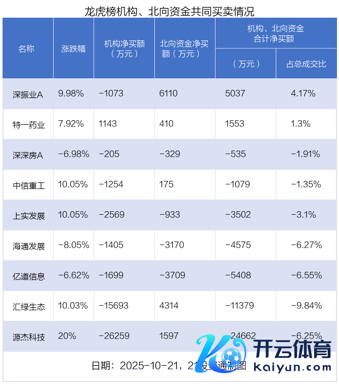 值得谨慎的是,机构和北向资金共同净买入了特一药业等1股;共同净卖出了深深房A、上实发展、海通发展、亿谈信息等4股;在深振业A,汇绿生态,源杰科技,中信重工上出现不合,机构净卖出深振业A1072.51万元,北向资金净买入6109.5万元;机构净卖出汇绿生态1.57亿元,北向资金净买入4313.78万元;机构净卖出源杰科技2.63亿元,北向资金净买入1596.83万元;机构净卖出中信重工1253.87万元,北向资金净买入174.97万元。
